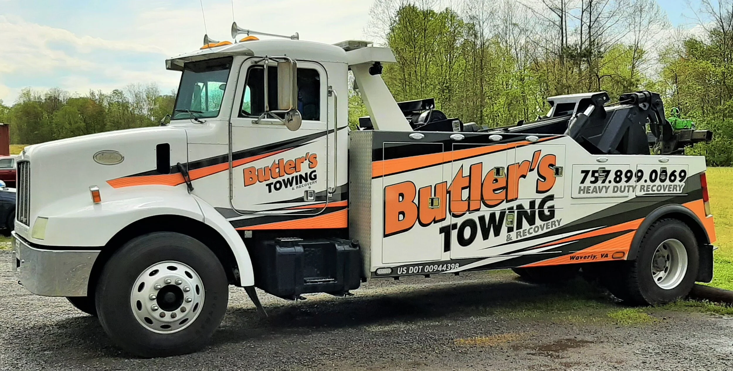 Butler’s Towing Company provides top notch towing and recovery services for Central and Southeastern Virginia. Our towing team takes pride in its quick response, reliability, and professionalism. That’s why customers trust Butler’s Towing.
